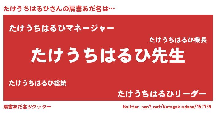 | ヒーロー風カッコイイあだ名 | 『ネオタケウチハルヒ』『天弓騎士タケ』 |