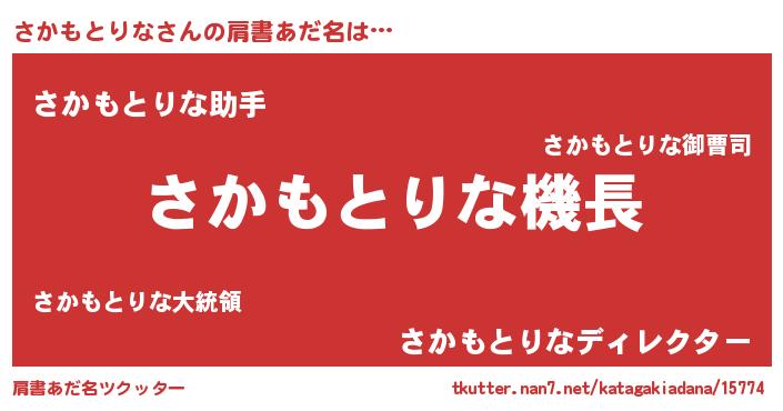 | 欧米人風あだ名 | 『さかもとりな・ステッグマイヤー』 |