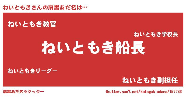 | ヘコむあだ名 | 『ねいともき(笑)』『ねいを』 |