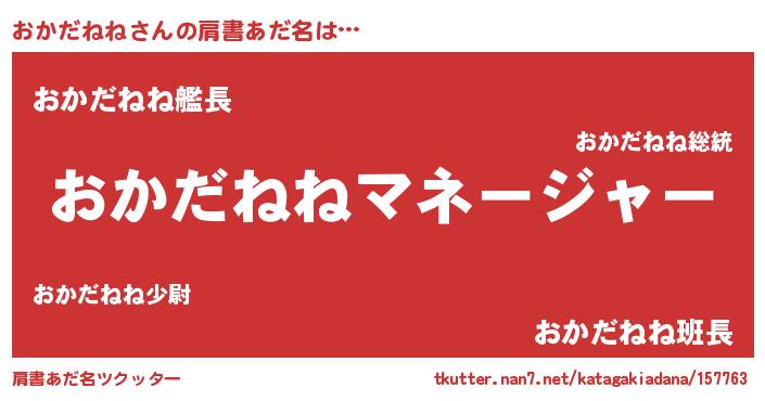| 男性向けラノベタイトル風あだ名 | 『はたらくおかだねねさま!』 |