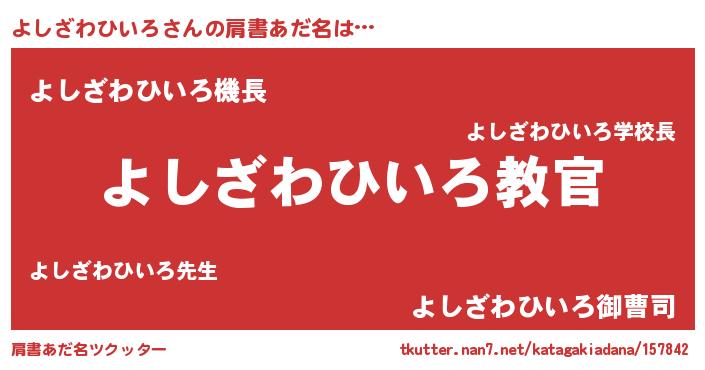 | 男性向けラノベタイトル風あだ名 | 『この素晴らしい世界によしざわひいろを!』 |