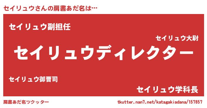 | ヘコむあだ名 | 『セイリュウ(笑)』『セイっふぃ~』 |