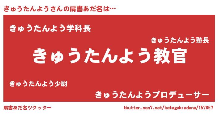 | 男性向けラノベタイトル風あだ名 | 『魔弾の王ときゅうたんよう』 |