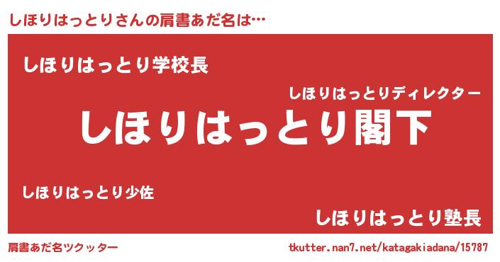| 意味不明あだ名 | 『自称しほりはっとり』 |