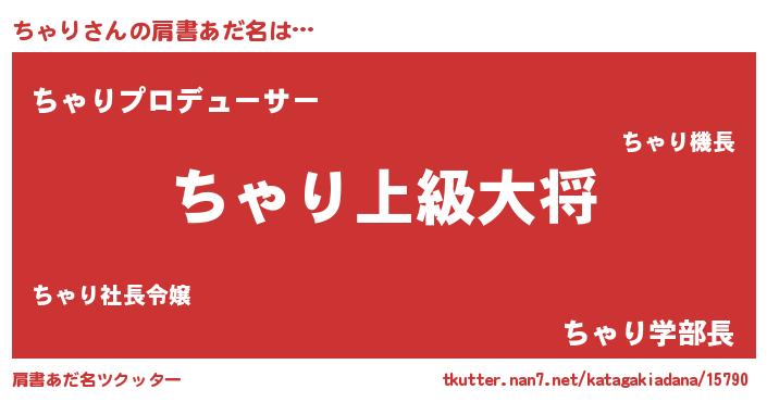 | ヒーロー風カッコイイあだ名 | 『慈愛の使者ちゃり』『スーパーチャリ』 |