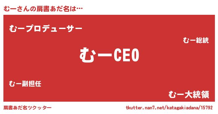 | ヘコむあだ名 | 『むーふぇ~』『牛乳』『むー(爆)』 |