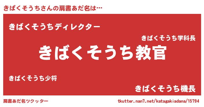 | ヒーロー風カッコイイあだ名 | 『仮面キバダー』『スーパーキバクソウチ』 |