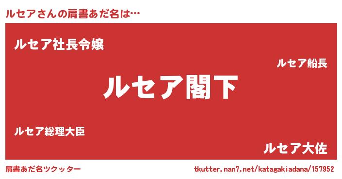 | 女子向けラノベタイトル風あだ名 | 『ルセアアンティーク』『ルセアの婚約者』 |