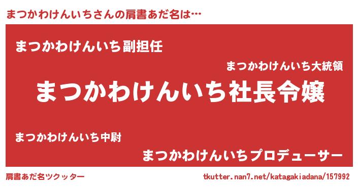 | 男性向けラノベタイトル風あだ名 | 『まつかわけんいちの憂鬱』 |
