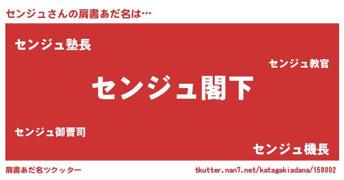 | ヒーロー風カッコイイあだ名 | 『超時空戦士センジュ』『幻影騎士セン』 |