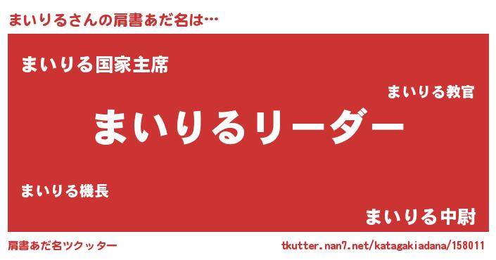 | 意味不明あだ名 | 『とにかく怪しいまいりる』 |