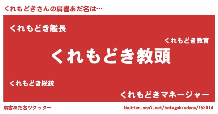 | 男性向けラノベタイトル風あだ名 | 『くれもどきという概念が存在しない退屈な世界 』 |