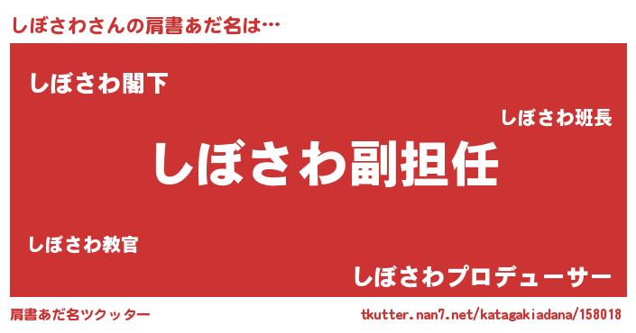 | ヒーロー風カッコイイあだ名 | 『ネオシボサワ』『超時空戦士シボサワ』 |