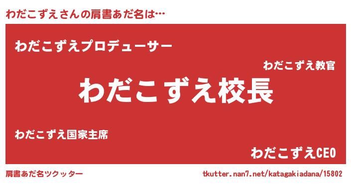 | ヒーロー風カッコイイあだ名 | 『ネオワダコズエ』『スーパーワダコズエ』 |