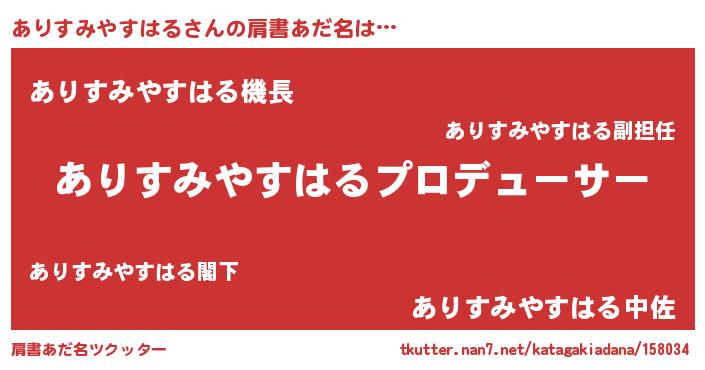 | ヘコむあだ名 | 『ありすみやすはる(遠い目)』『ありっちょ』 |
