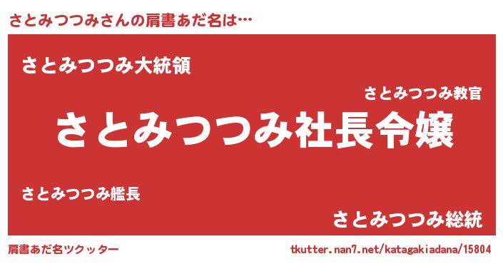 | 男性向けラノベタイトル風あだ名 | 『さとみつつみの憂鬱』 |