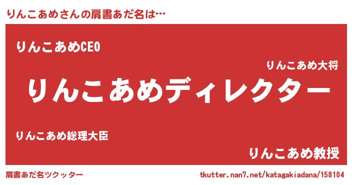 | 男性向けラノベタイトル風あだ名 | 『りんこあめに滅ぼされるだけの簡単なお仕事です』 |