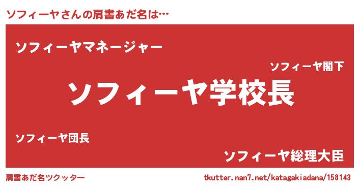 | 男性向けラノベタイトル風あだ名 | 『おまえをオタクにしてやるから、俺をソフィーヤにしてくれ! 』 |