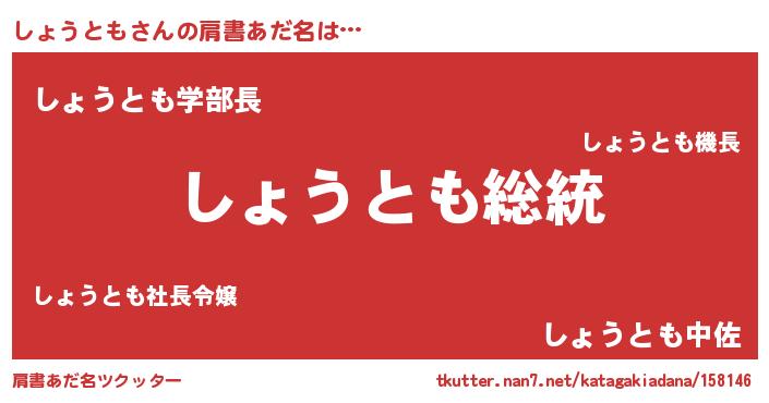 | 男性向けラノベタイトル風あだ名 | 『Re:しょうともから始める異世界生活』 |