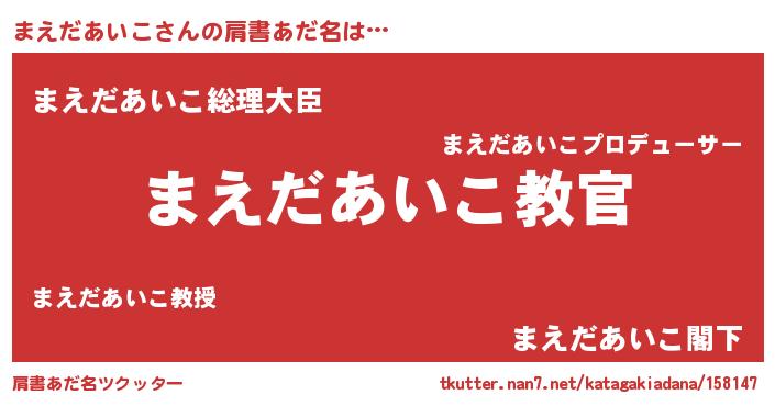 | 意味不明あだ名 | 『住所不定無職まえだあいこ(7歳)』 |
