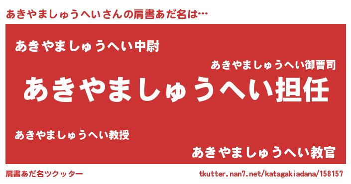 | 意味不明あだ名 | 『永久保存あきやましゅうへい』 |