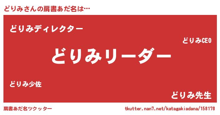| 男性向けラノベタイトル風あだ名 | 『ダンジョンにどりみを求めるのは間違っているだろうか』 |