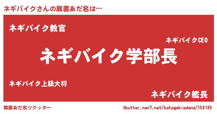 | 男性向けラノベタイトル風あだ名 | 『おまえをオタクにしてやるから、俺をネギバイクにしてくれ! 』 |