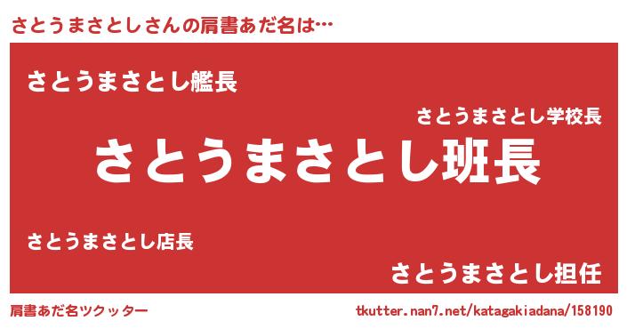 | ヘコむあだ名 | 『さと太郎』『さとうまさとし(笑)』 |