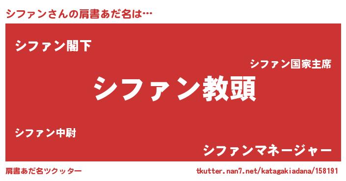| ヘコむあだ名 | 『シファン(笑)』『酢こんぶ』 |