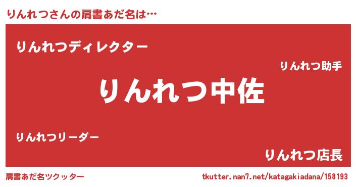 | 男性向けラノベタイトル風あだ名 | 『転生したらりんれつだった件』 |