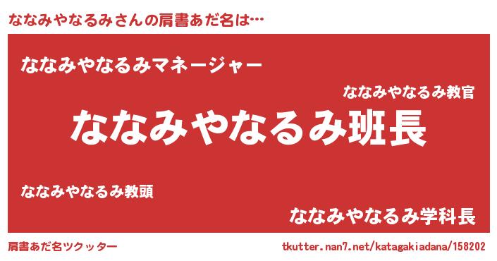 | 男性向けラノベタイトル風あだ名 | 『ななみやなるみの嫁は女の子じゃないと思った?』 |