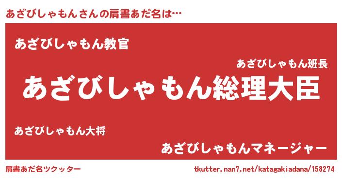 | 意味不明あだ名 | 『あざびしゃもんフォーエバー』 |