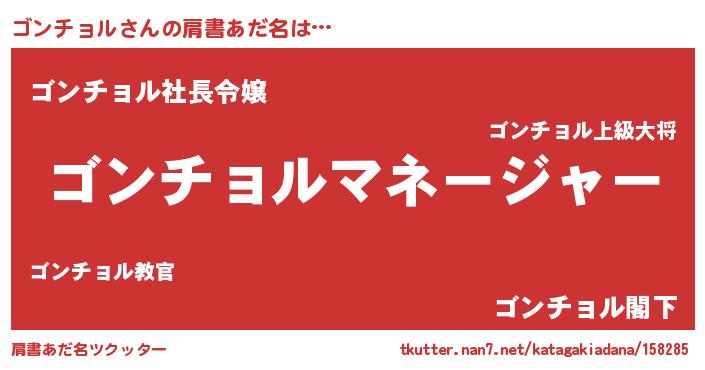 | 意味不明あだ名 | 『ペロリンゴンチョル』『自称ゴンチョル』 |