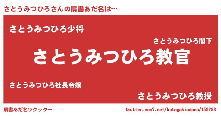 | 男性向けラノベタイトル風あだ名 | 『魔弾の王とさとうみつひろ』 |