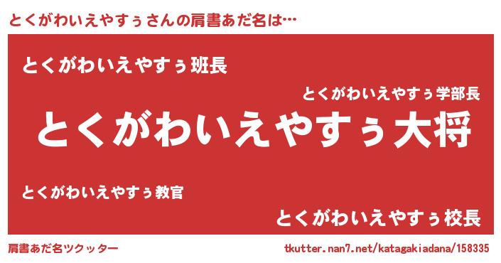 | ヘコむあだ名 | 『とくっちょ』『とくがわいえやすぅ(笑)』 |