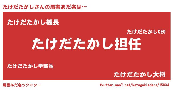 | 男性向けラノベタイトル風あだ名 | 『たけだたかしという概念が存在しない退屈な世界 』 |