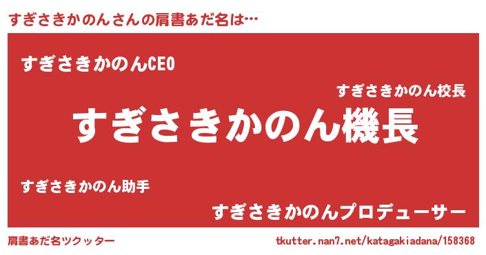 | 胡散臭い通販商品みたいなあだ名 | 『億万長者になれる霊験あらたかなお札…その名も「すぎさきかのん」』 |