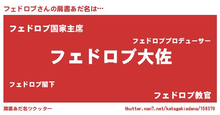 | 男性向けラノベタイトル風あだ名 | 『転生したらフェドロブだった件』 |