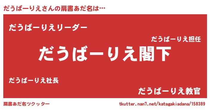 | 男性向けラノベタイトル風あだ名 | 『Re:だうばーりえから始める異世界生活』 |
