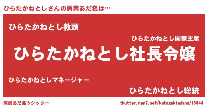 | 胡散臭い通販商品みたいなあだ名 | 『モテモテ間違いなし霊験あらたかなお札…その名も「ひらたかねとし」』 |