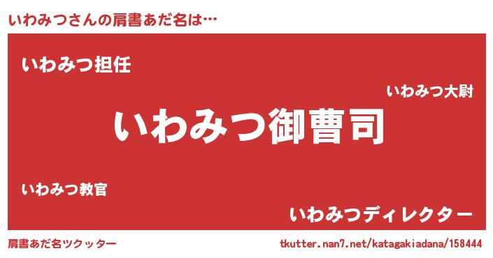 | 胡散臭い通販商品みたいなあだ名 | 『必ず成功する霊験あらたかなお札…その名も「いわみつ」』 |