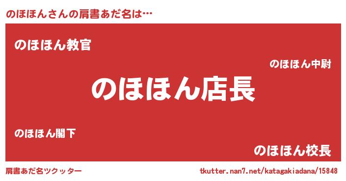 | ヘコむあだ名 | 『のほにゅー』『のほほん(小並感)』 |