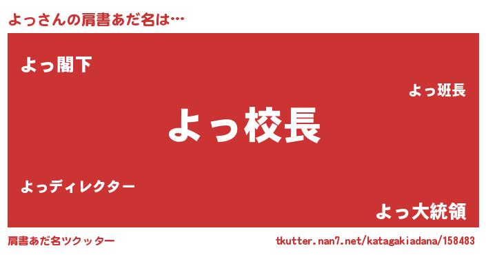 | 意味不明あだ名 | 『永久保存よっ』『自称よっ』 |