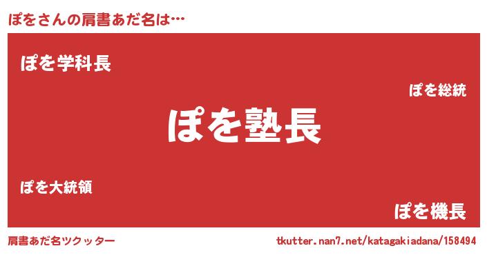 | 男性向けラノベタイトル風あだ名 | 『ダンジョンにぽをを求めるのは間違っているだろうか』 |