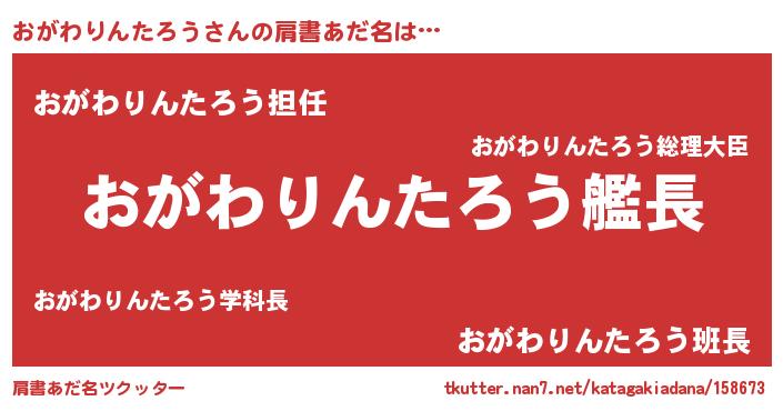 | 女子向けラノベタイトル風あだ名 | 『シンデレラおがわりんたろう家の靴箱館』 |
