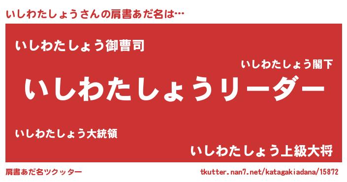 | 意味不明あだ名 | 『とにかく怪しいいしわたしょう』 |