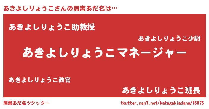 | 男性向けラノベタイトル風あだ名 | 『あきよしりょうこに滅ぼされるだけの簡単なお仕事です』 |