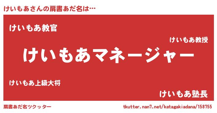 | 意味不明あだ名 | 『住所不定無職けいもあ(13歳)』 |