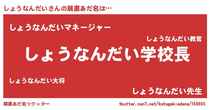 | ヘコむあだ名 | 『しょうなんだい(苦笑)』『しょを』 |