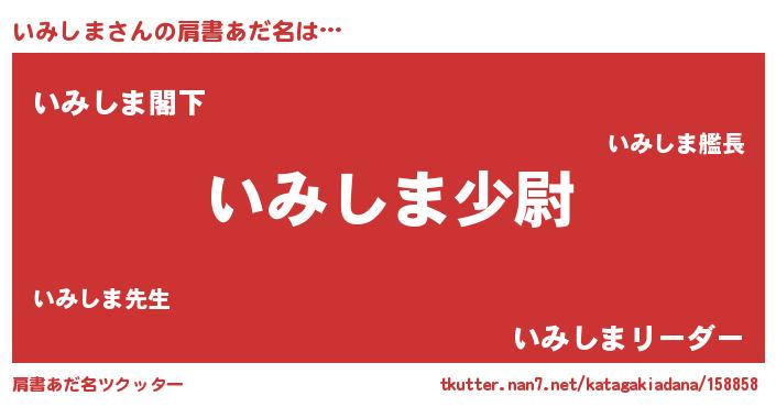 | ヒーロー風カッコイイあだ名 | 『究極戦士イミシマ』『銀牙騎士イミ』 |